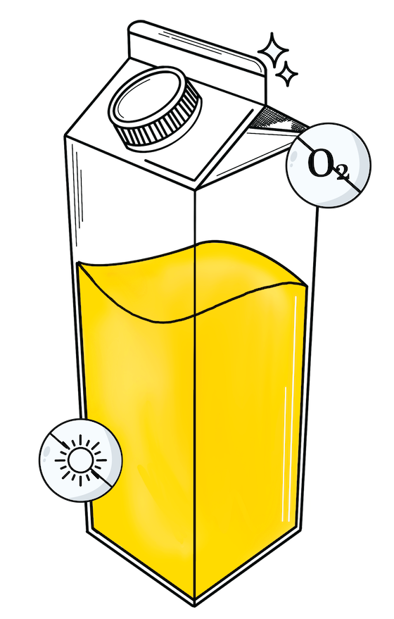 Opaque, oxygen-free cartons keep oil fresh naturally