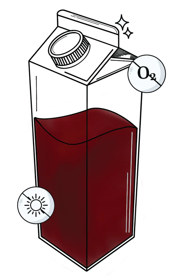 Opaque, oxygen-free cartons keep oil fresh naturally